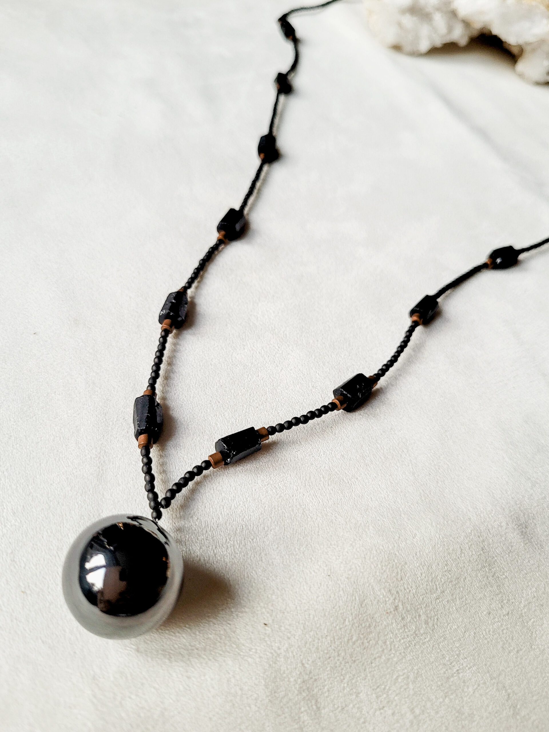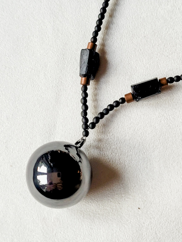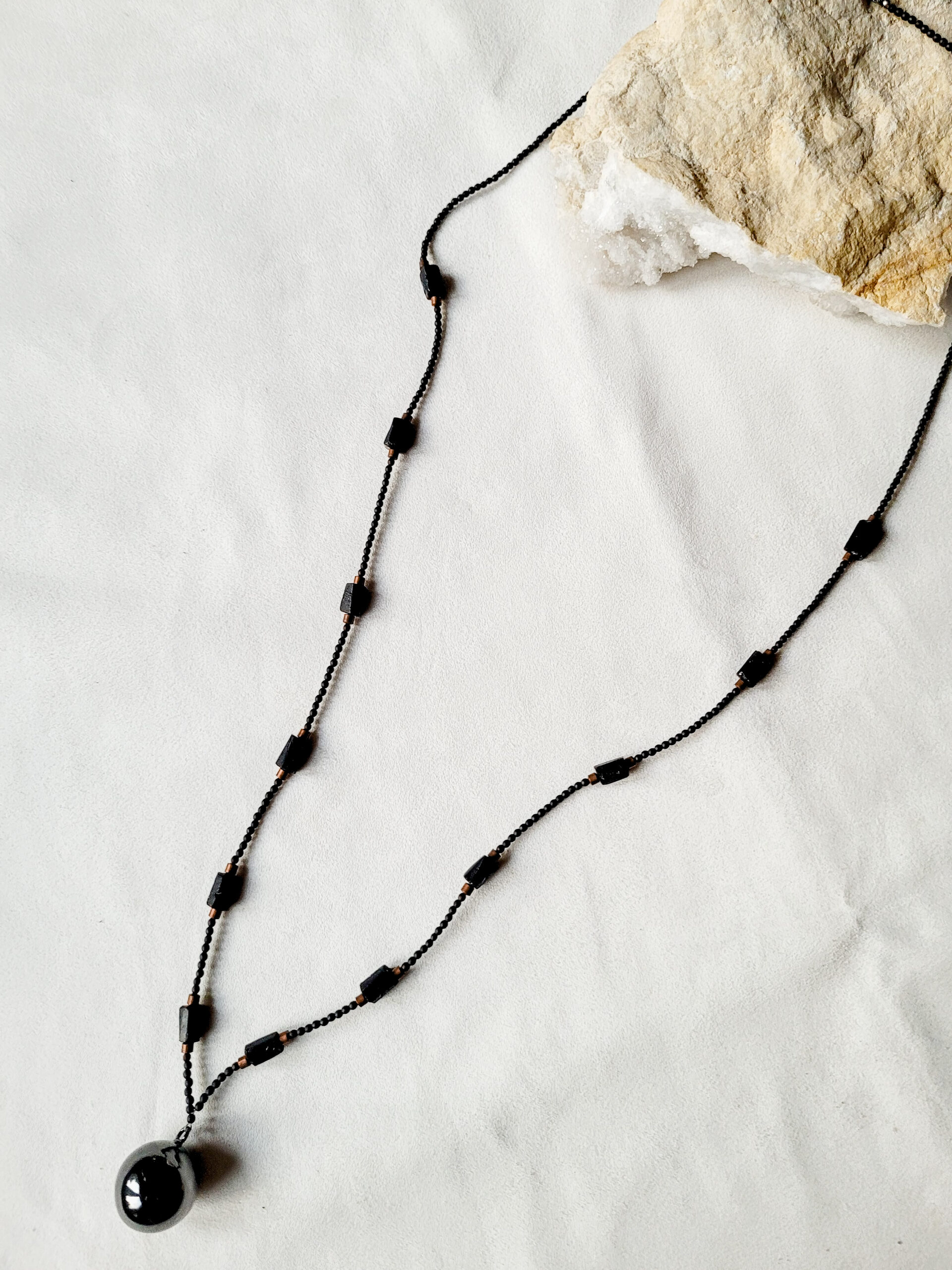 Naszyjnik z czarnym turmalinem i hematytem
