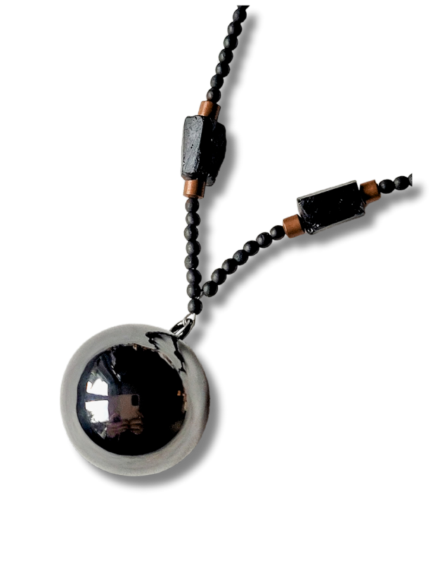Naszyjnik męski, kolor czarno-miedziany, z czarnym turmalinem i hematytem Szept Aniołą, z kulką